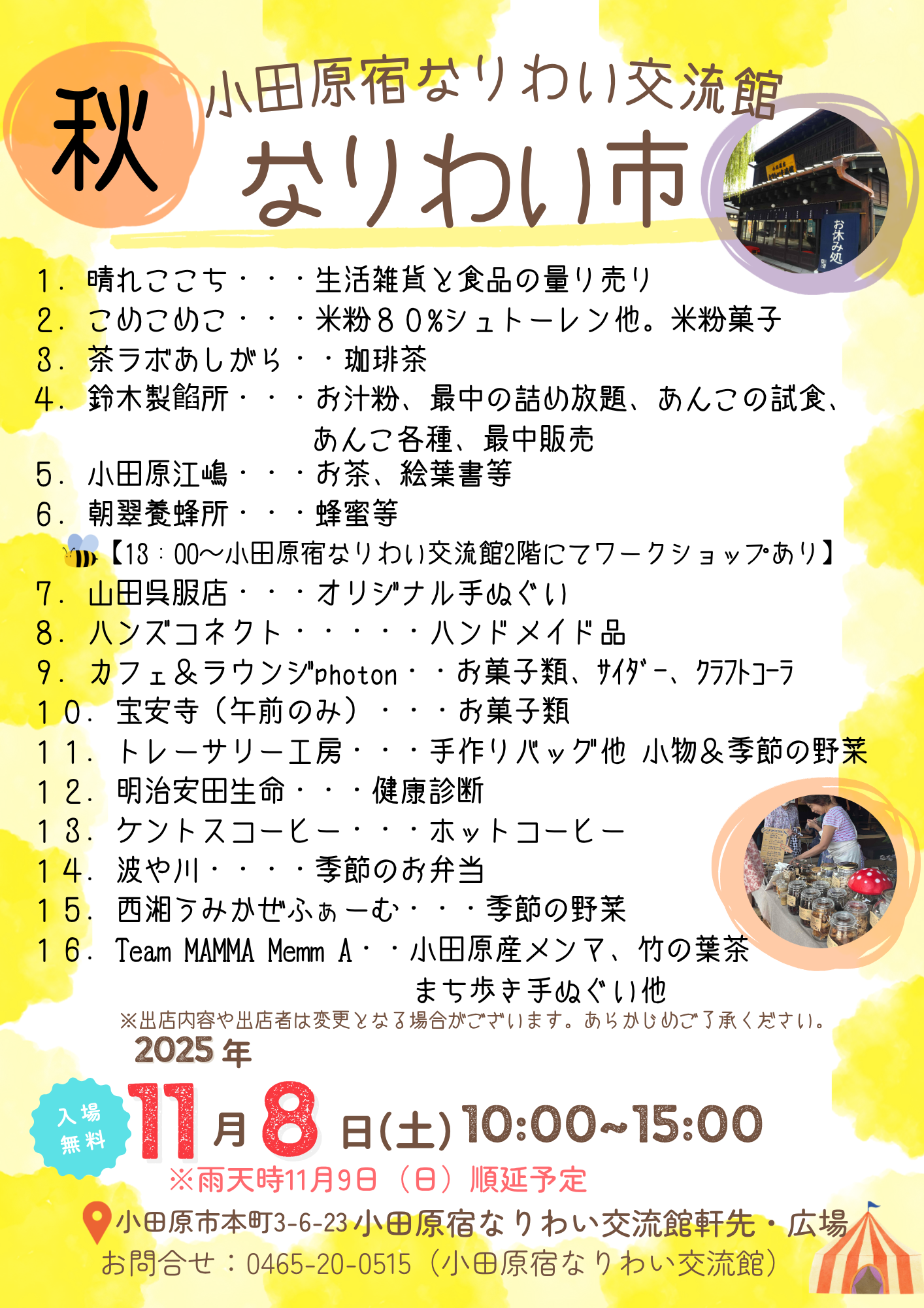 | 問合せ | 小田原宿なりわい交流館 0465-20-0515 |