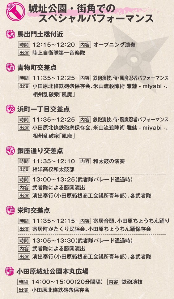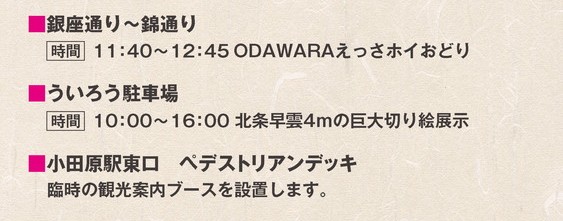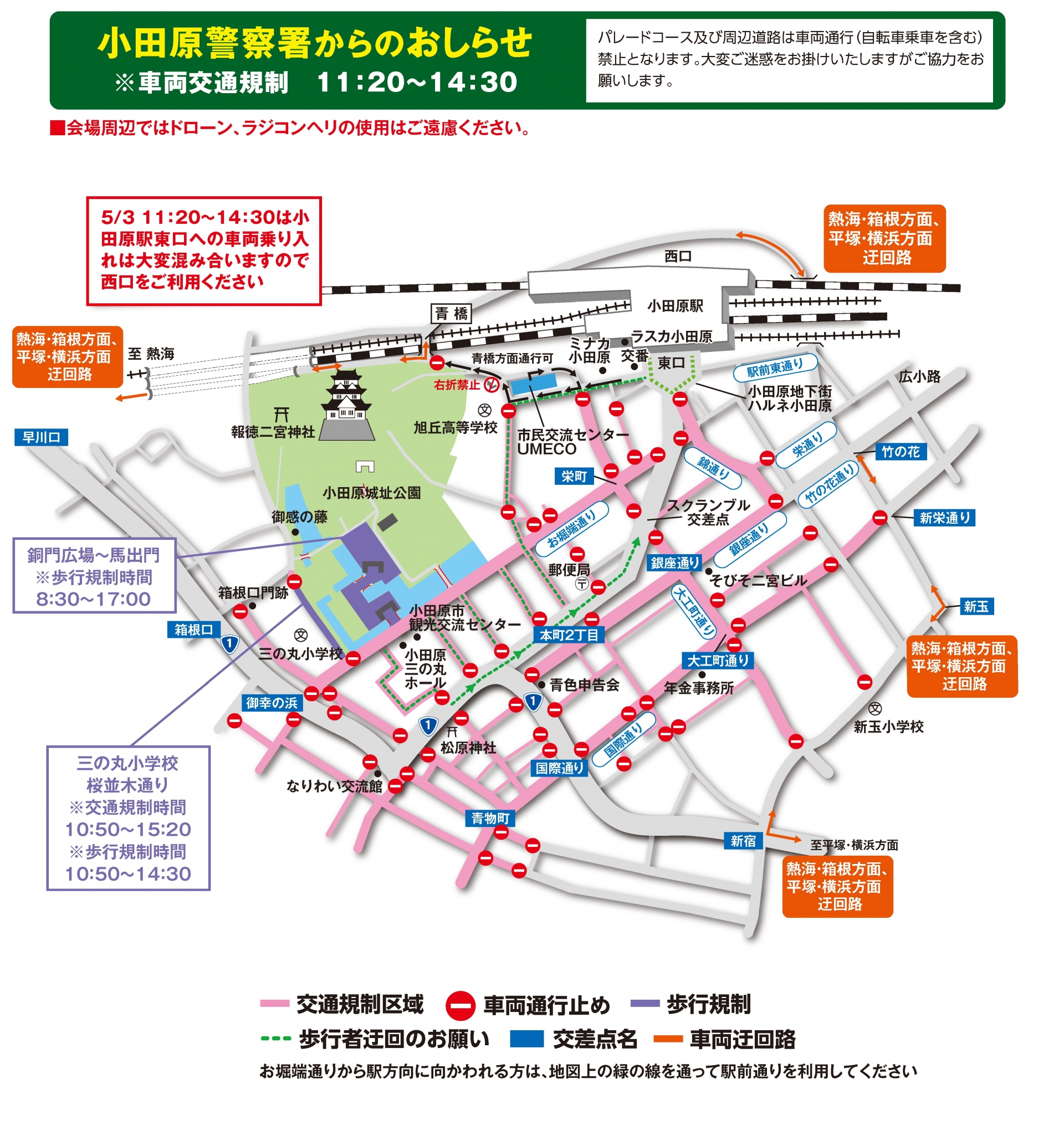 ※当日は大変混雑が予想されます。事前に自宅や小田原駅周辺でトイレを済ませ会場へお越しください。11時~14時はトイレが混雑します。