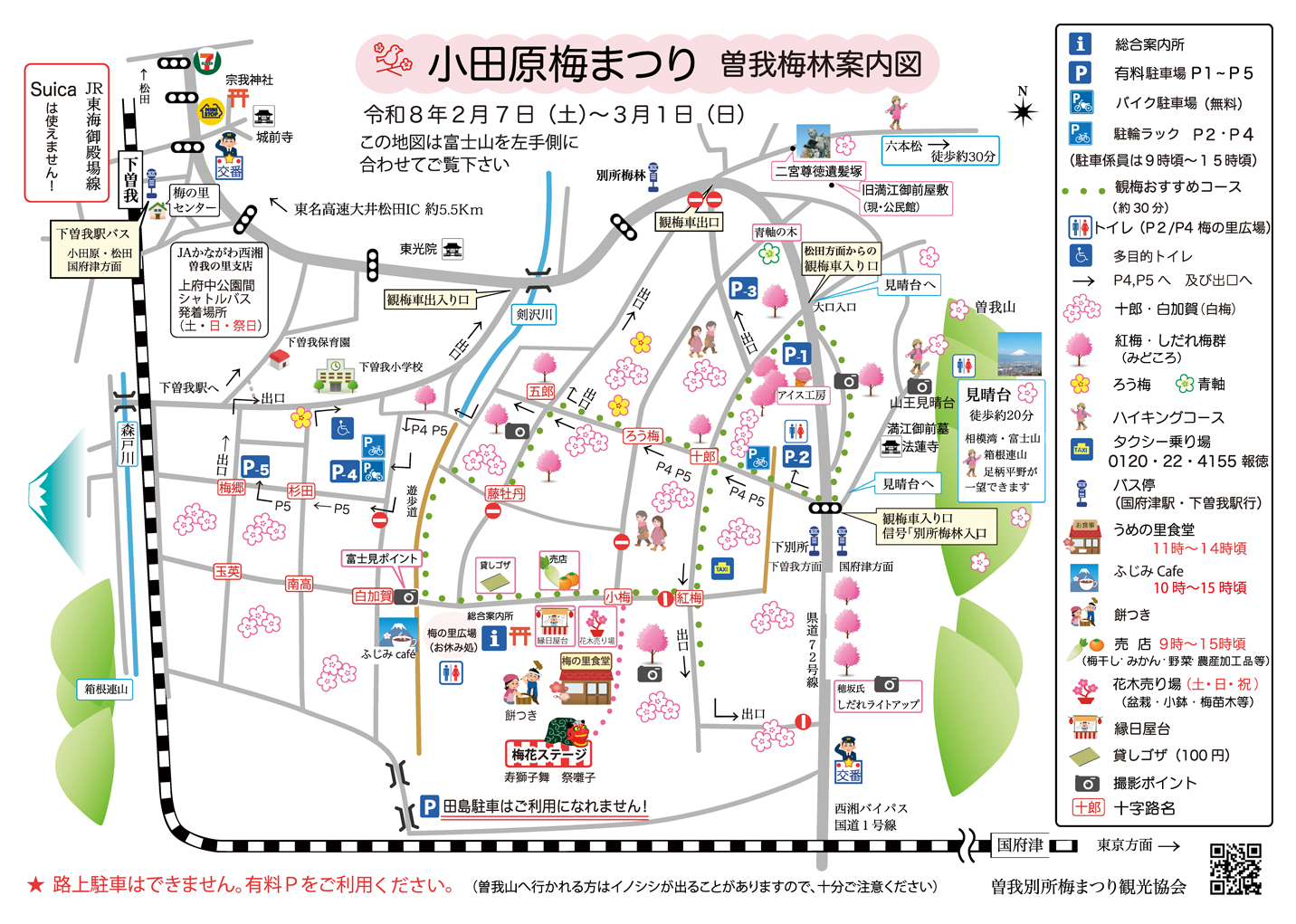 小田原梅まつりの開催期間中は、臨時駐車場(有料)があります。